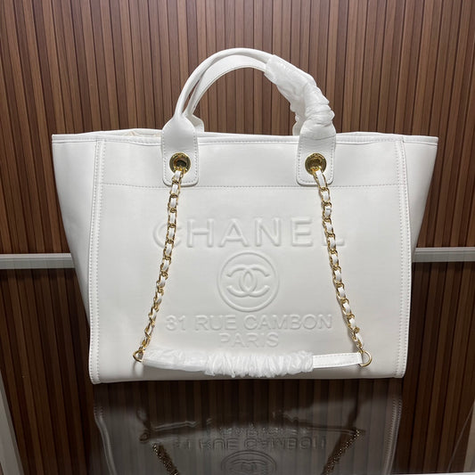cc Canvas Pearl Large Deauville Tote Ecru Beige