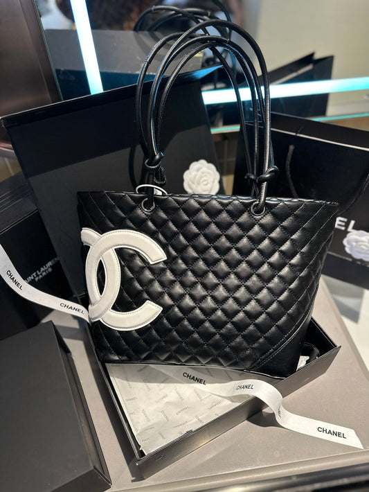 CC leather tote bag black/white size: 36.5/32/15 cm