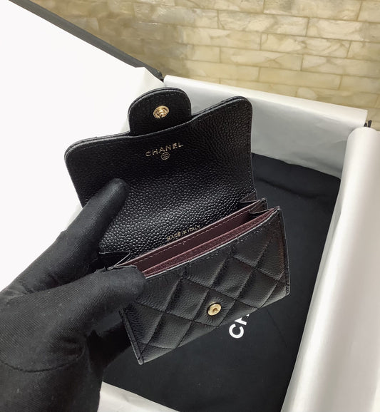 CC Compact Wallet Quilted Caviar