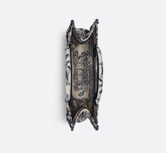 D Book Tote Beige and Black Toile de Jouy Soleil Embroidery