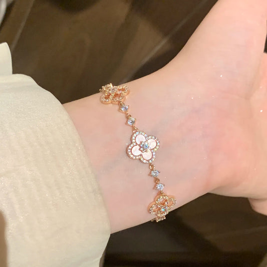 Pink Fritillary Four Leaf Clover Bracelet