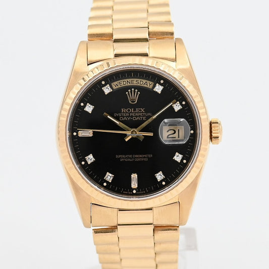 Rlx Day-Date 36 Black set with Diamonds and rubies Dial Yellow Gold Watch 118208