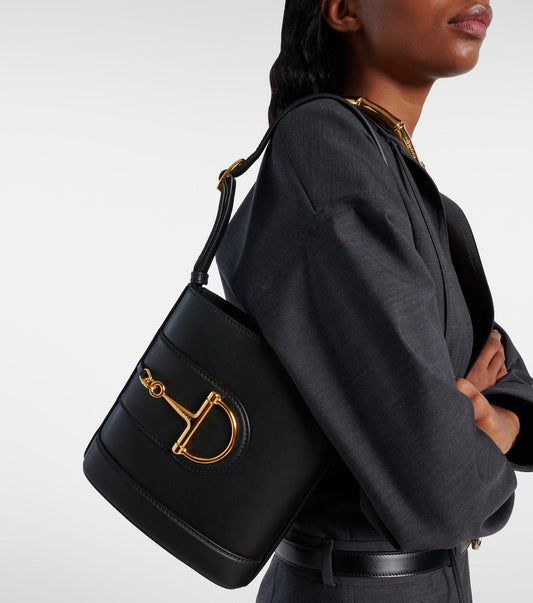 GUCCI small horsebit embellished leather bucket bag