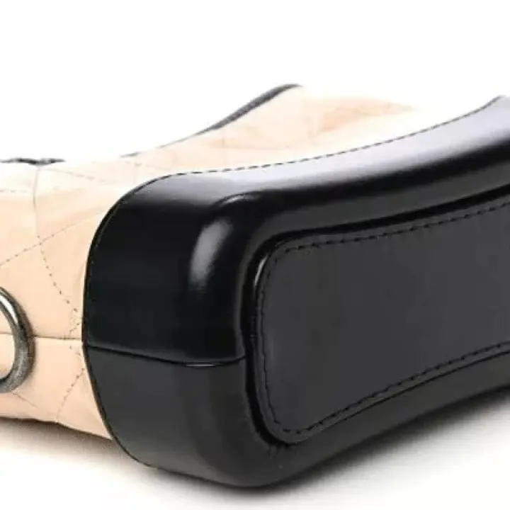 CC Aged Calfskin Quilted Small Gabrielle Hobo Beige Black