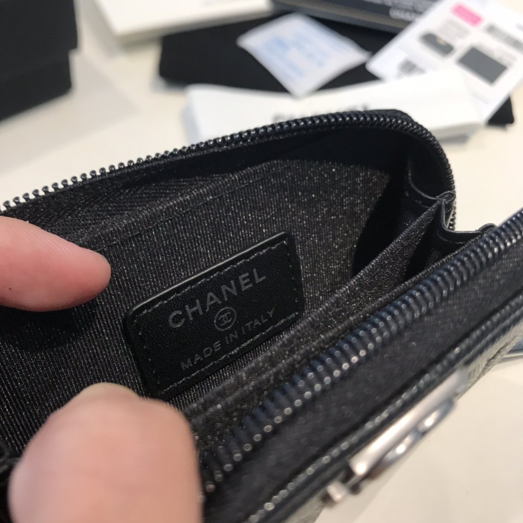 cc CO-CO Boy Flap Card Holder 11.5cm/4.5in Silver Hardware For Women Black