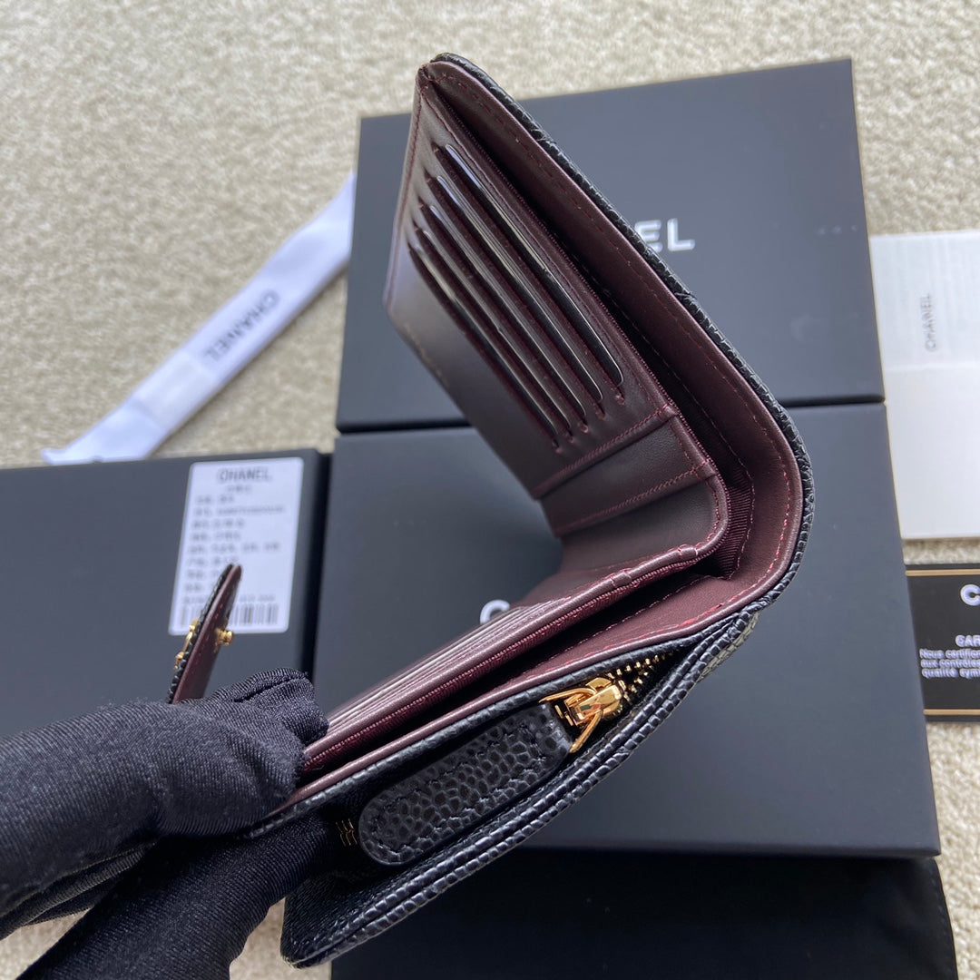 cc CO-CO Flap Wallet 15cm/5.9in Gold Hardware For Women Black