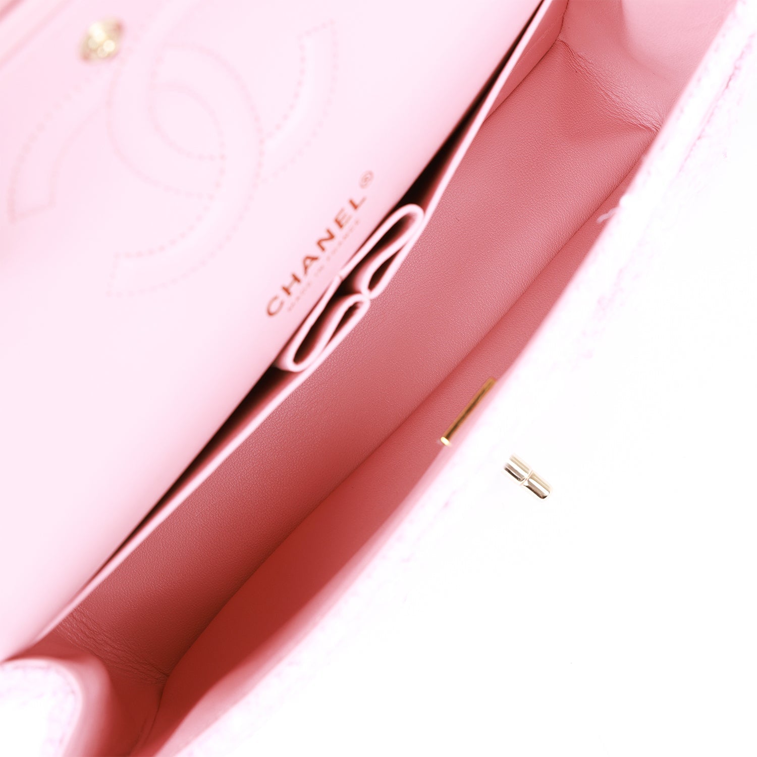 CC Medium Classic Double Flap Bag Rose Sakura Tweed Light Gold Hardware