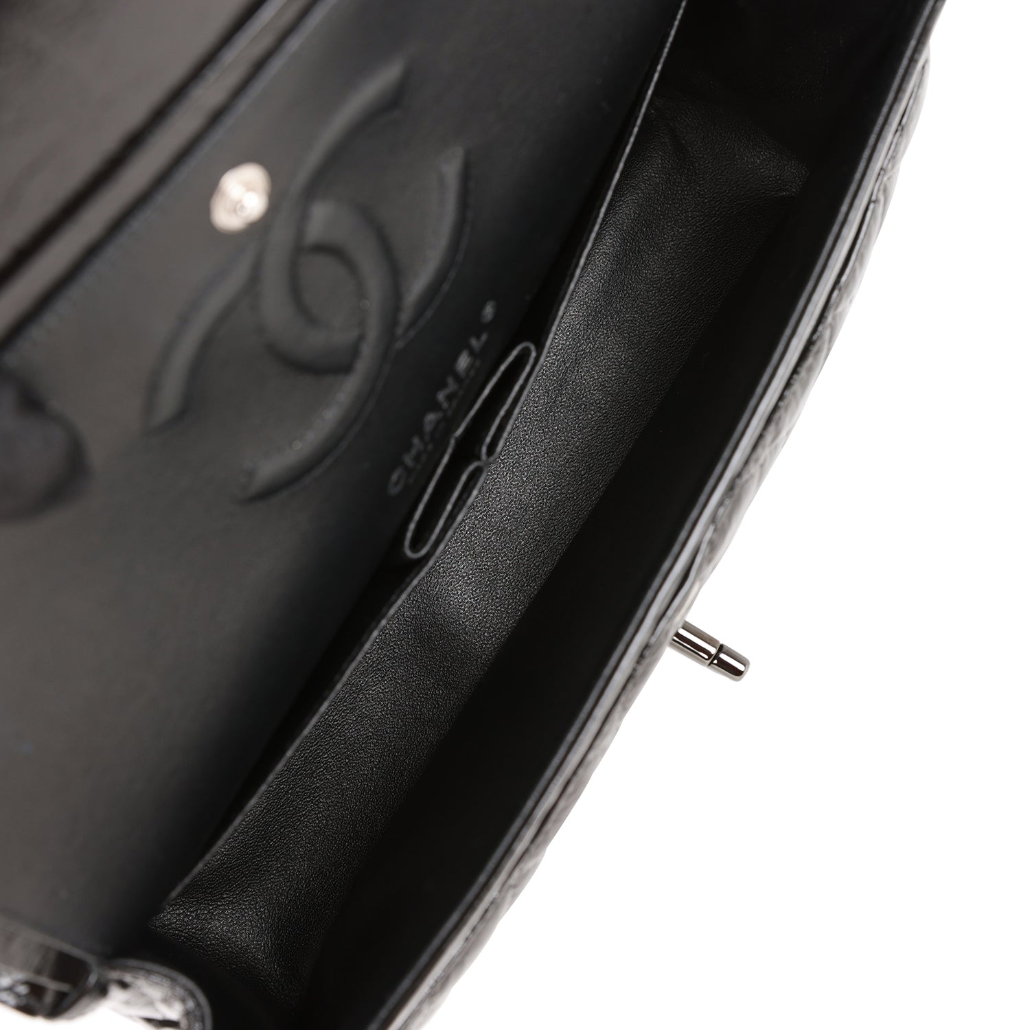 CC Medium Classic Double Flap Bag SO Black Crumpled Calfskin Black Hardware