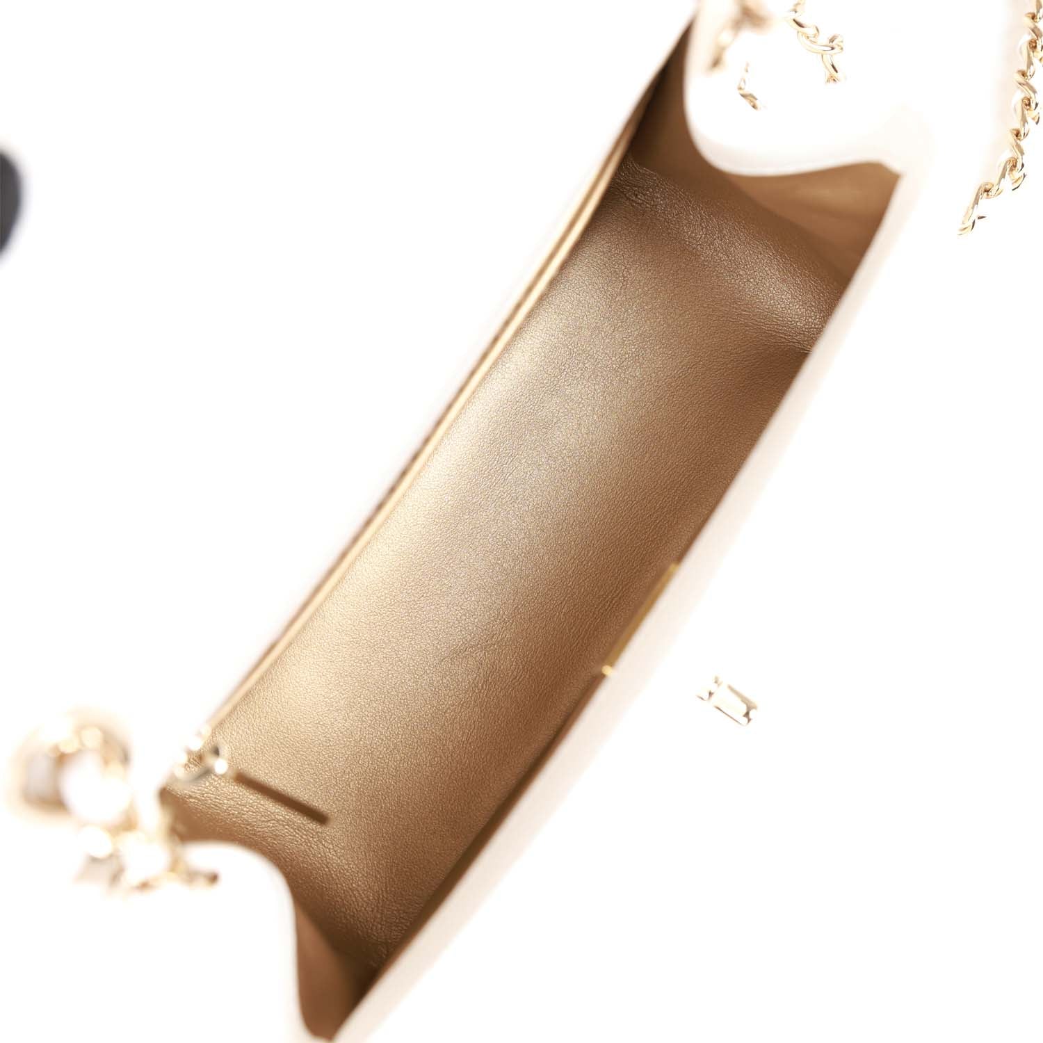 CC Pearl Crush Mini Square Flap Bag White Lambskin Light Gold Hardware