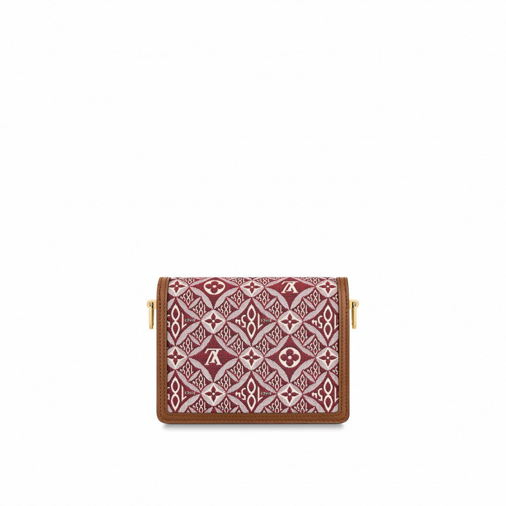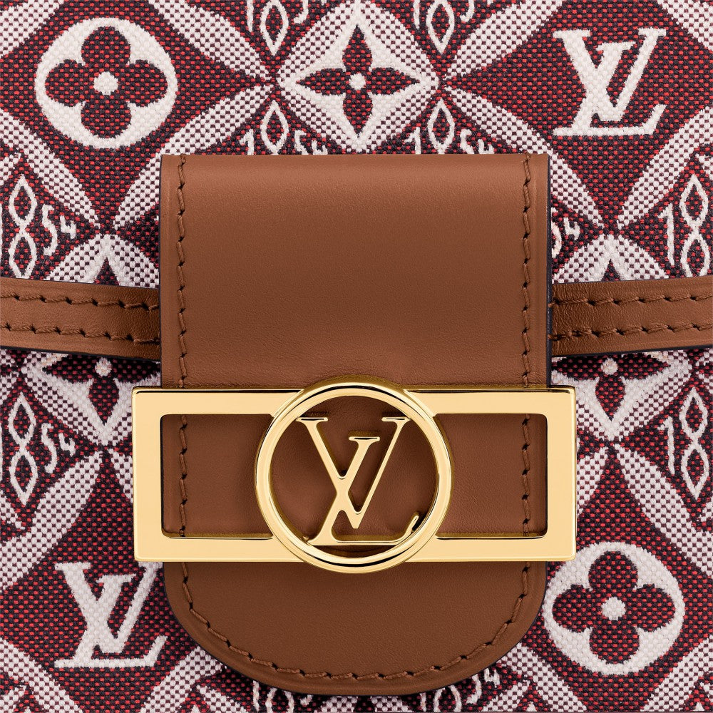 For Winter 2020. Nicolas Ghesquière fashions the Dauphine Mini handbag with a new signature jacquard. a modern pattern composed of many of the House’s iconic symbols. This adorable compact bag features a shiny lock and a leather strap for shoulder and cross-body carry. It is perfectly sized for everyday wear.