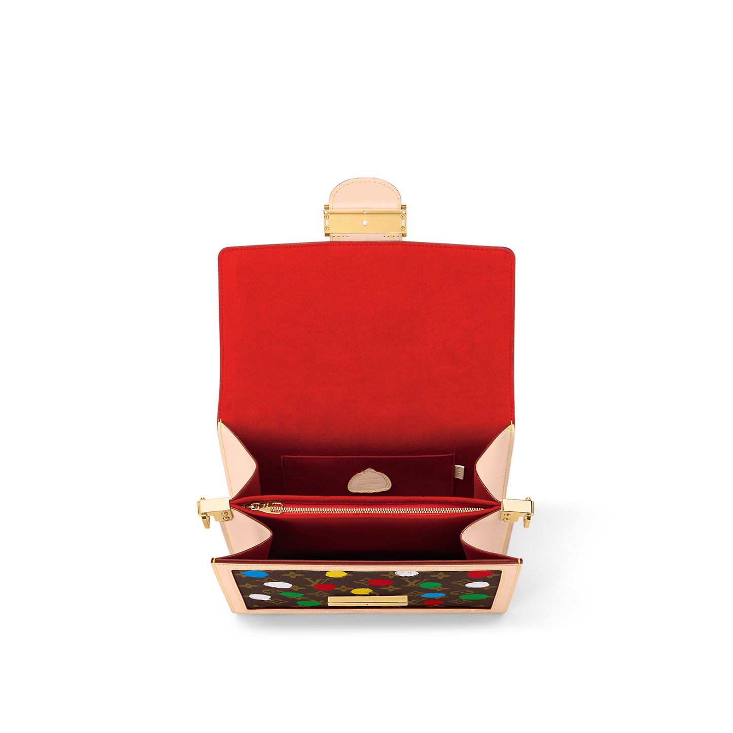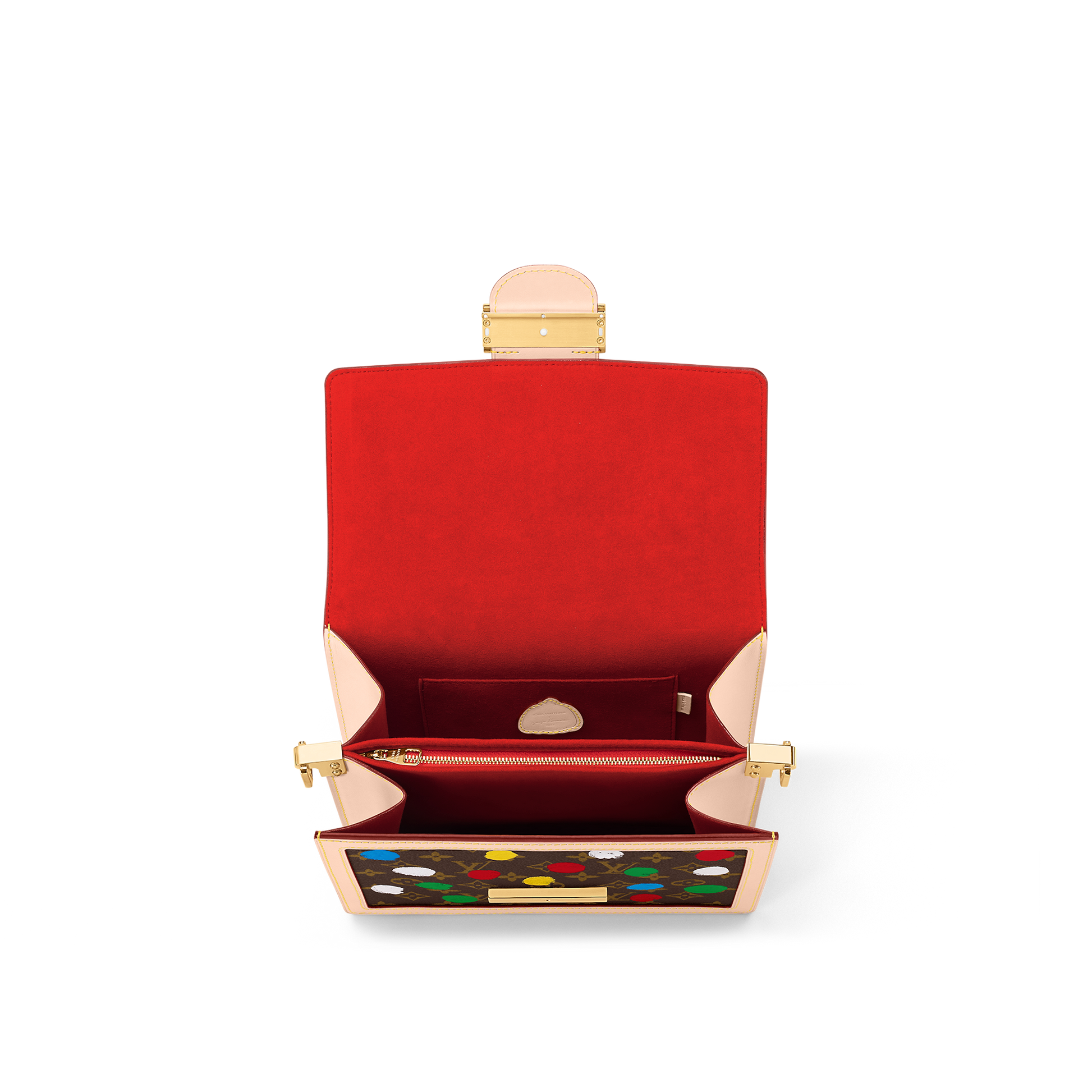 The LVxYK Dauphine MM joins the “Painted Dots” theme as part of the exclusive L x Yayoi Kusama collection. The venerable Japanese artist is known for her use of dots. an emblematic motif for her since childhood. In this version of the Dauphine. rainbow-colored dots adorn Monogram canvas. screen-printed with a 3D hand-painted effect. A high-spirited new look that brings fresh creative energy to a classic bag.