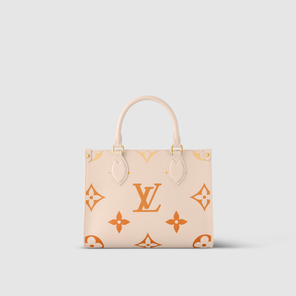 Fashioned from in supple Monogram Empreinte leather with its and embossed with a and printed extra-large Giant Monogram motif. the OnTheGo PM is a compact tote bag offering with a fresh gradient colorway for the summer. It has two rolled-leather top handles for hand carry and a removable and adjustable strap for shoulder or cross-body wear. Inside there’s a zipped pocket will fit daily essentials. for valuables.