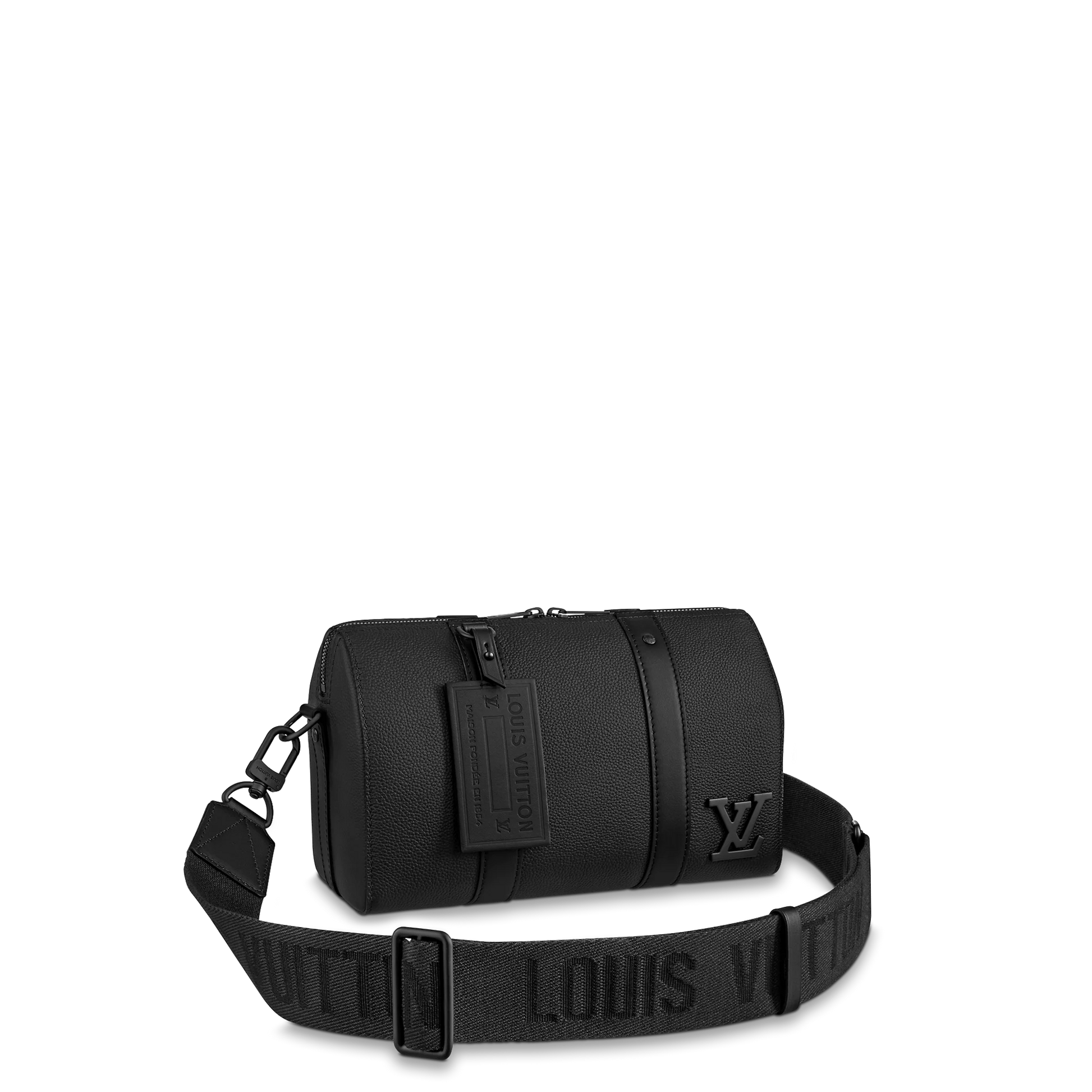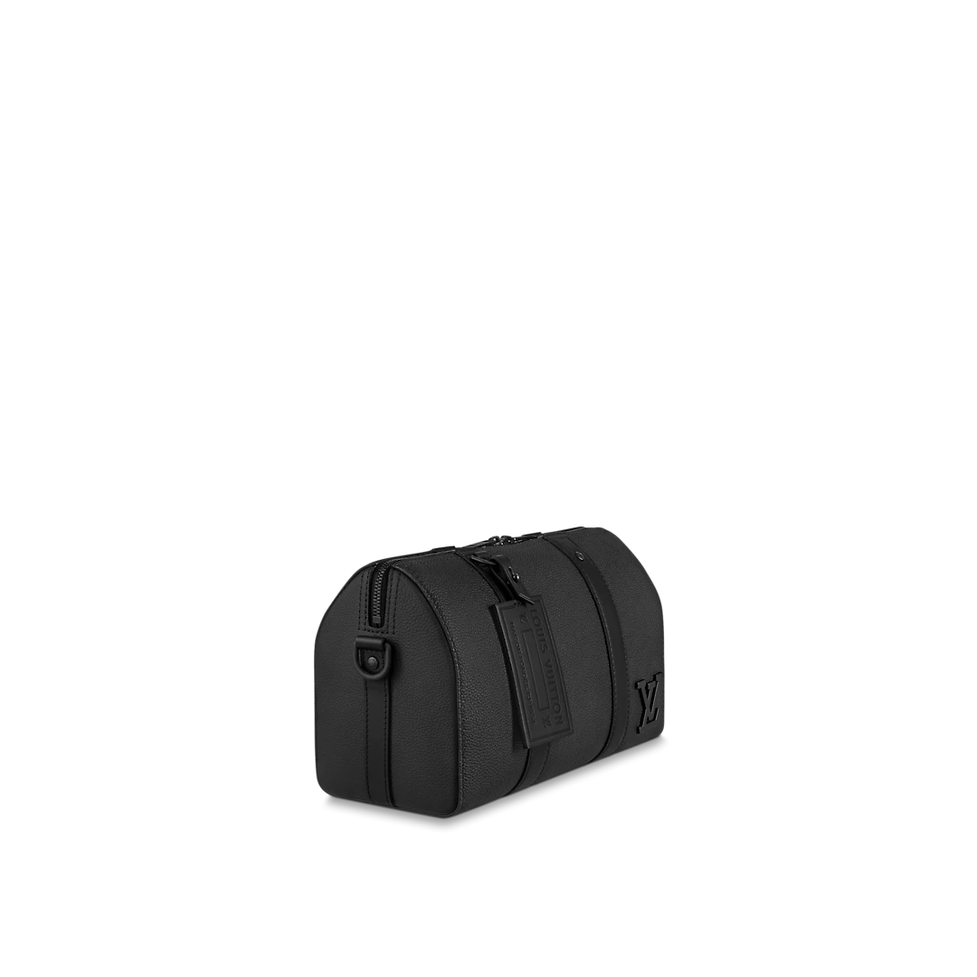 This version of the iconic City Keepall in deep black Aerogram leather joins L’s New Classics line for Fall 2021. Fine-grained calfskin as soft and supple as an old-fashioned aerogram is accented with the initials in black metal for an understated signature touch. Easy to carry with its removable strap. it combines functionality with contemporary elegance.