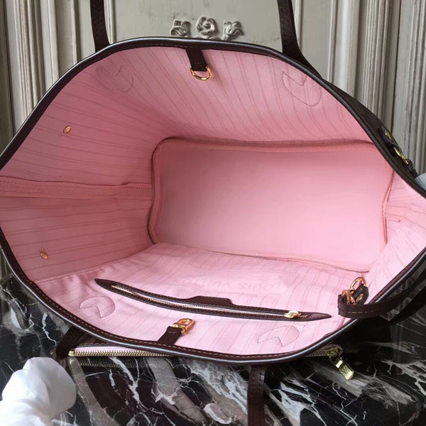 Legendary Neverfull: always exactly what you need it to be. Capacious but not bulky. structured yet supple. at home on the town or in the country. Cinch the side laces. and voila! it's a sleek city bag. Loosen them and you have a chic. practical tote. The slim leather handles fit over the shoulder or on the arm. Shown here in Damier Ebene canvas.