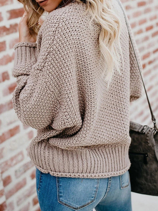 Pull à tricoter ample à col en V de couleur unie