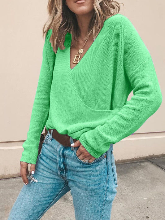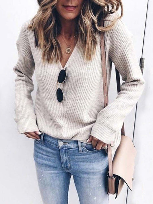 Pull en maille à col en V de couleur unie