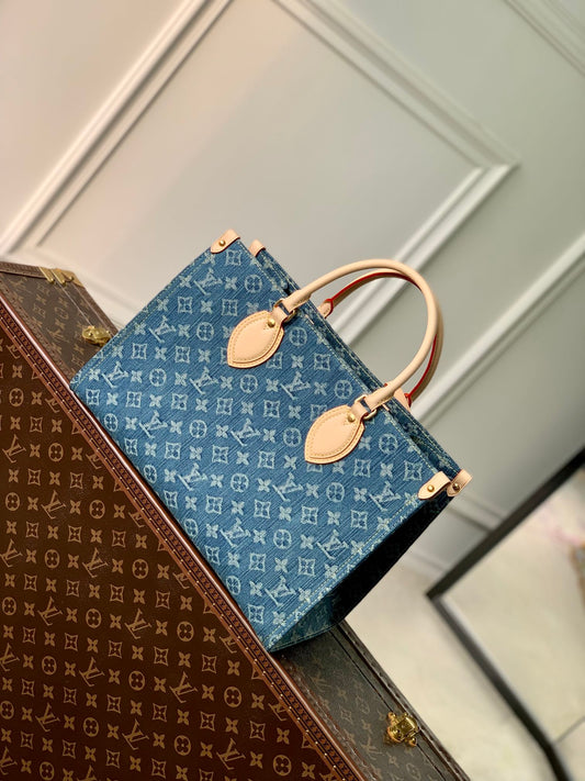 Louis Vuitton M46871 Onthego MM Denim blau Jeans Bag 35x27x14cm