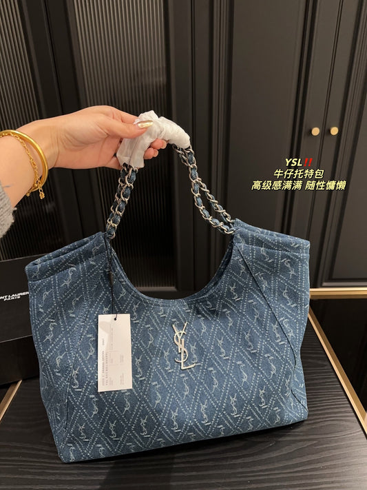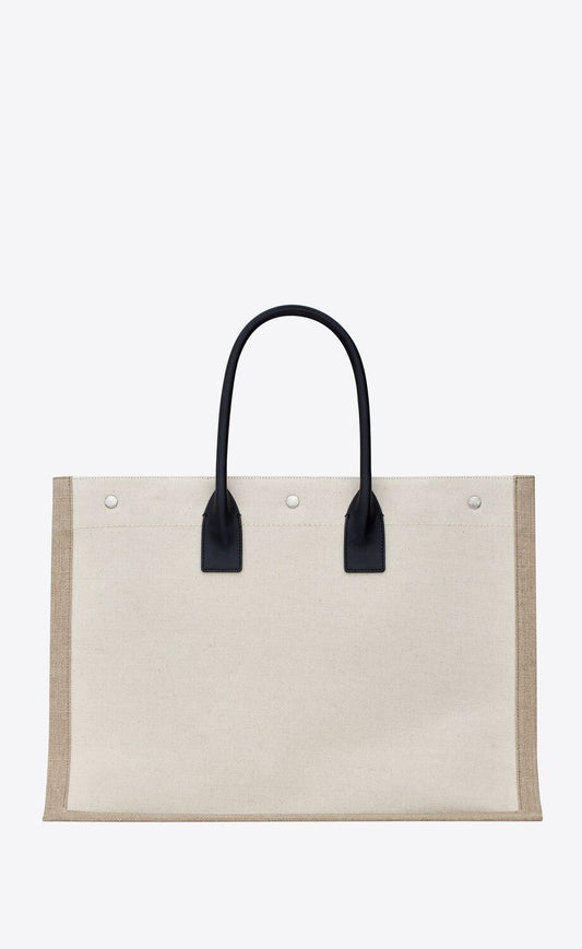 Y RIVE GAUCHE LARGE TOTE BAG IN PRINTED CANVAS AND LEATHER