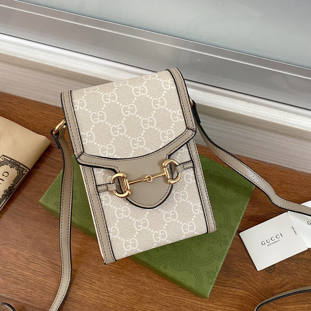 The world of Gc Horsebit 1955 evolves with the introduction of a mini bag in beige and ebony GG Supreme canvas. Inspired by archival designs. the accessory unifies the original details first introduced over six decades ago with a modern spirit. highlighting the Horsebit.