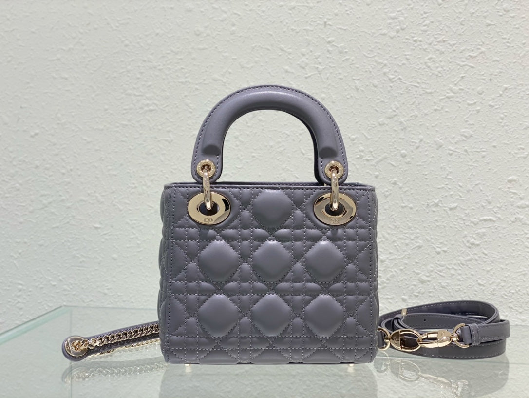 Lady Dior Bag Latte Cannage Lambskin Bag Grey 17x15x7cm