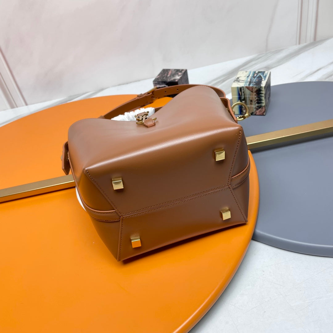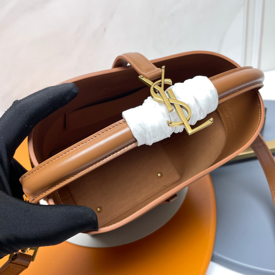 SAINT LAURENT LE 37 Mini Shiny Leather Bucket Bag Brown