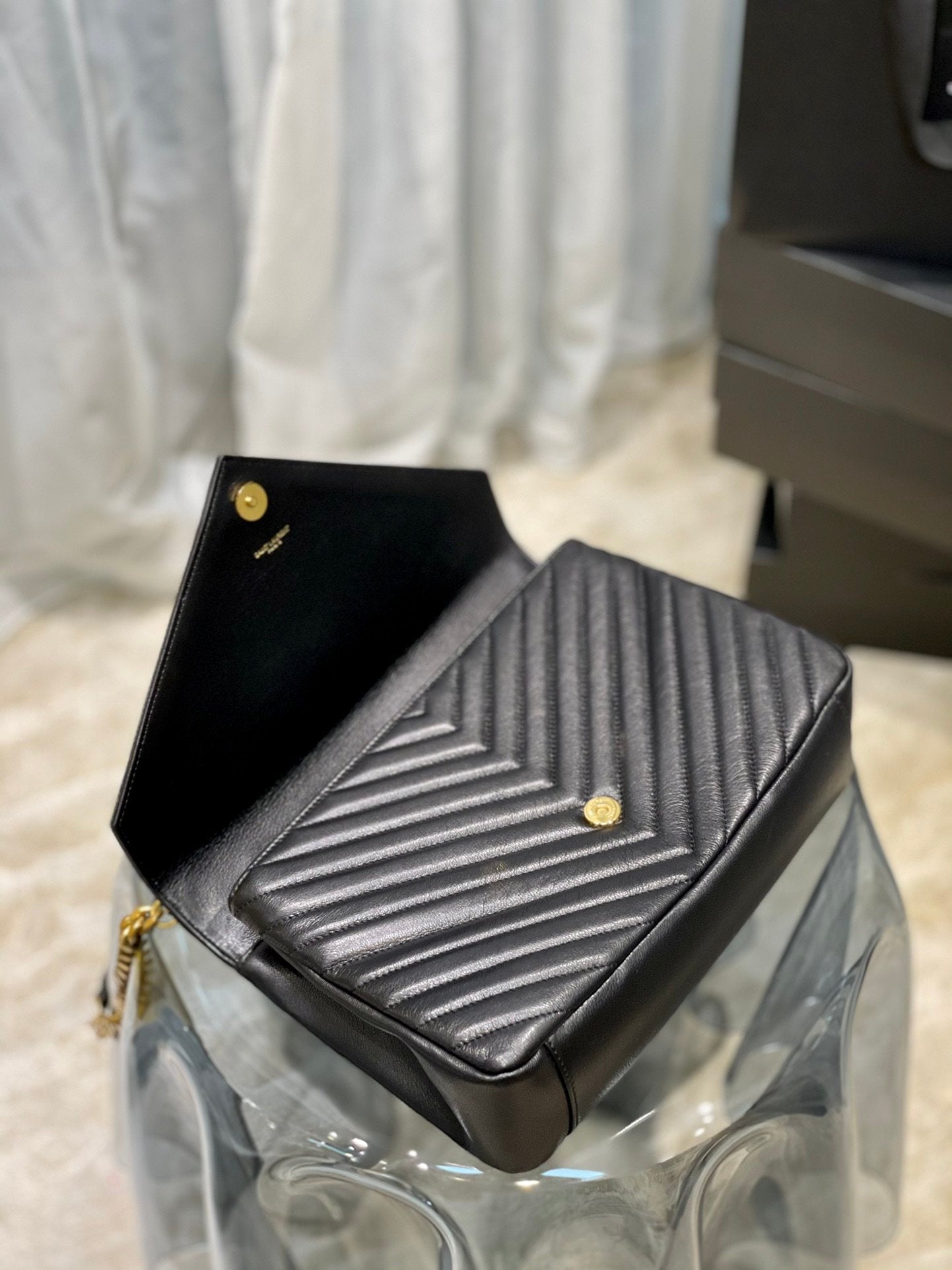 Y College Large Chain Bag Black With Gold Hardware For Women 12.6in/32cm Y 600278BRM071000