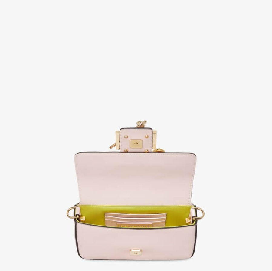 Magnetic clasp. FF fabric-lined internal compartment. inner pocket and gold-finish metalware.