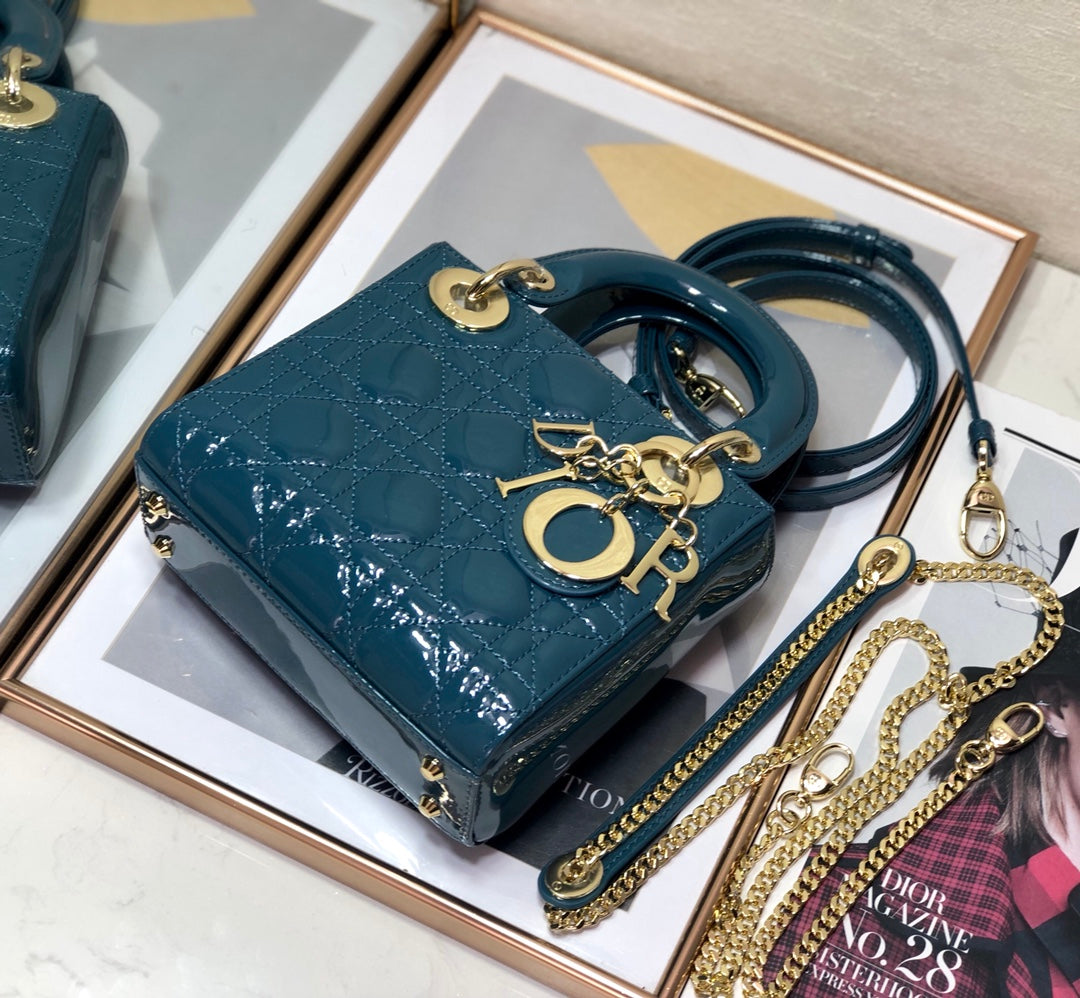 The Lady CD My ABCCD bag epitomizes CD's vision of elegance and beauty. Sleek and refined. the timeless and modern style is crafted in cherry red patent calfskin with Cannage stitching. creating the instantly recognizable quilted texture. Pale gold-finish metal 'D.I.O.R.' charms further embellish its silhouette with an elegant allure. The small style features a thin. removable leather shoulder strap and can be carried by hand. worn over the shoulder or crossbody.