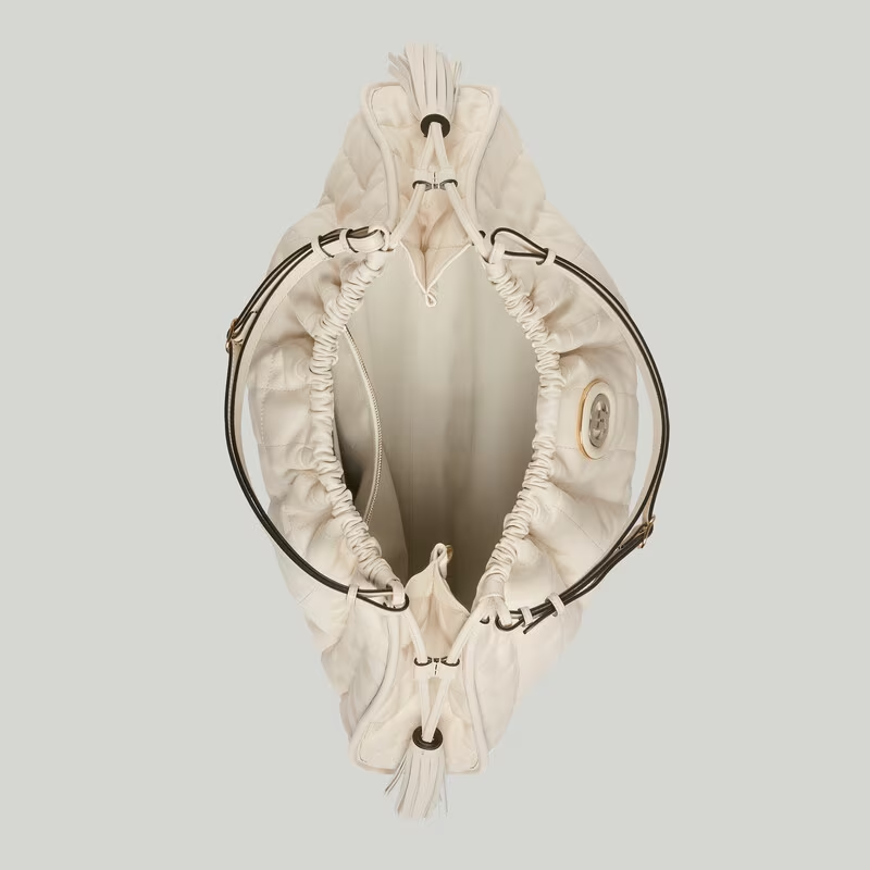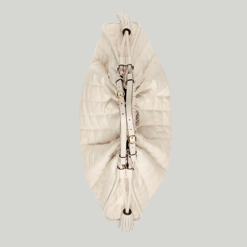 GG elevates the everyday tote with its combination of heritage and innovation. Designed with a relaxed silhouette. the new GG tote bag combines quilted materials and a roomy structure. providing both style and practicality. With a chain strap and an adjustable handle. versatility is at the core of the functional features. allowing for multiple ways to wear it.