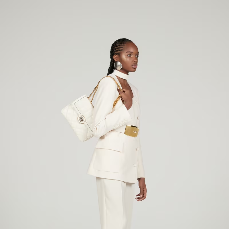 Fascinated with the past. GG continues to expand its horizons by revisiting classic silhouettes and refined materials. With their quilted design. the new bags highlight emblematic symbols from the archive for a retro feel. such as Interlocking G hardware on the flap closure. '70s-inspired leather trim. and a chain shoulder strap. like this shoulder bag.