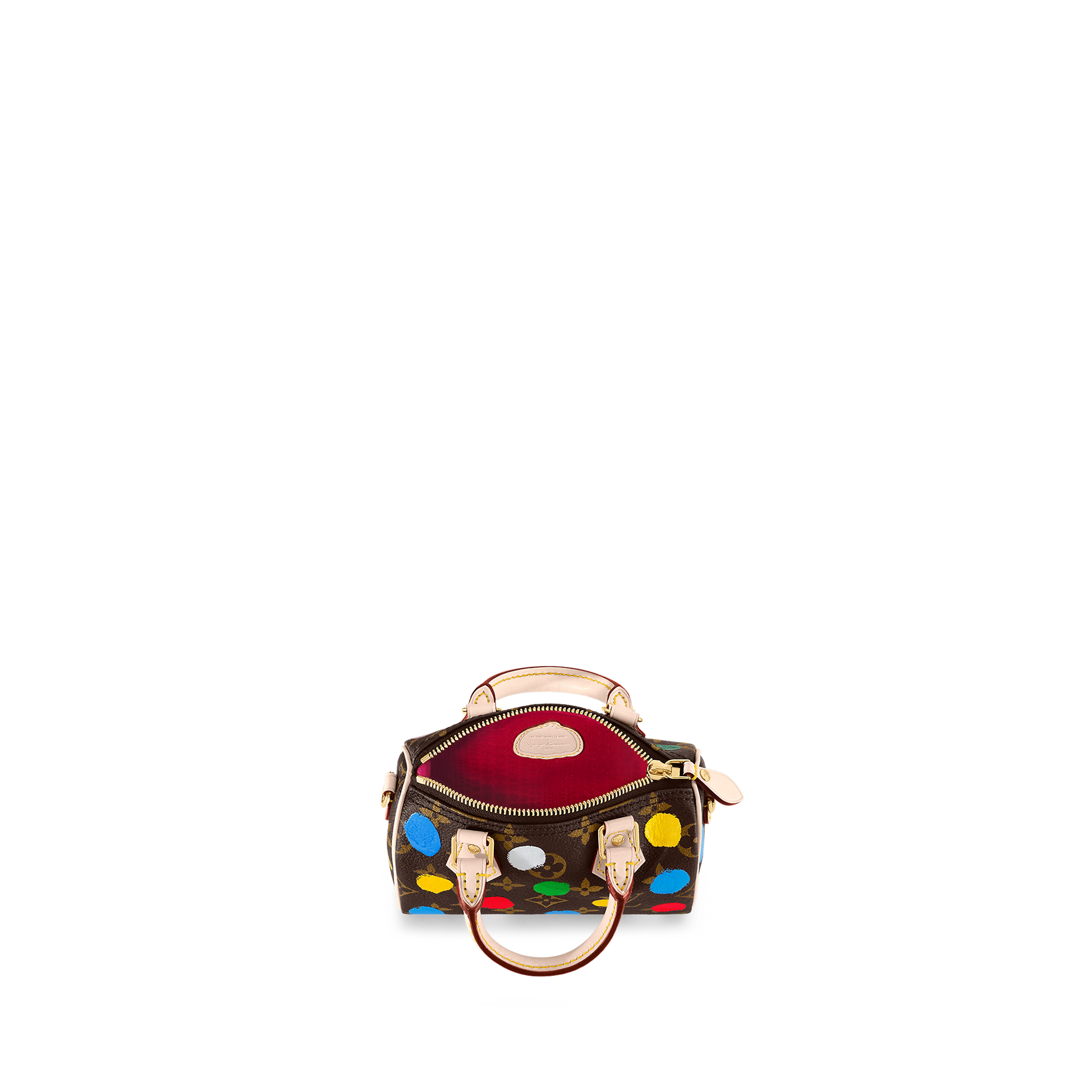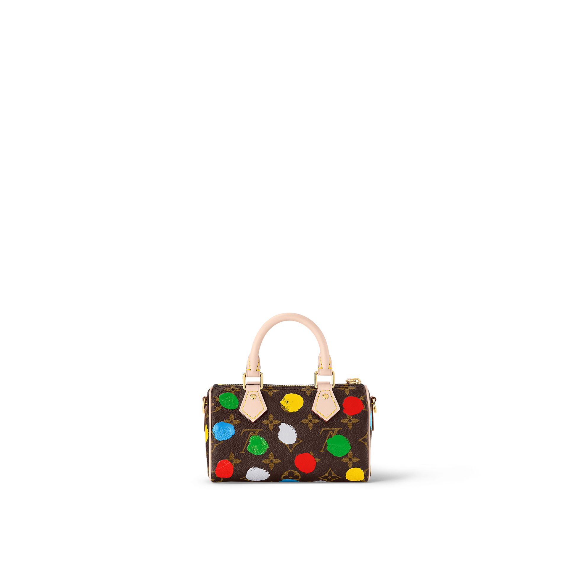 The LVxYK Nano Speedy joins the celebration of art and craftsmanship as part of the L x Yayoi Kusama collection. The venerated Japanese artist has used dots as a recurring visual theme throughout her career. For this user-friendly clutch. the House’s signature Monogram canvas is enlivened with colorful dots. screen-printed with a 3D hand-painted effect. A chic accessory with an upbeat. arty look.