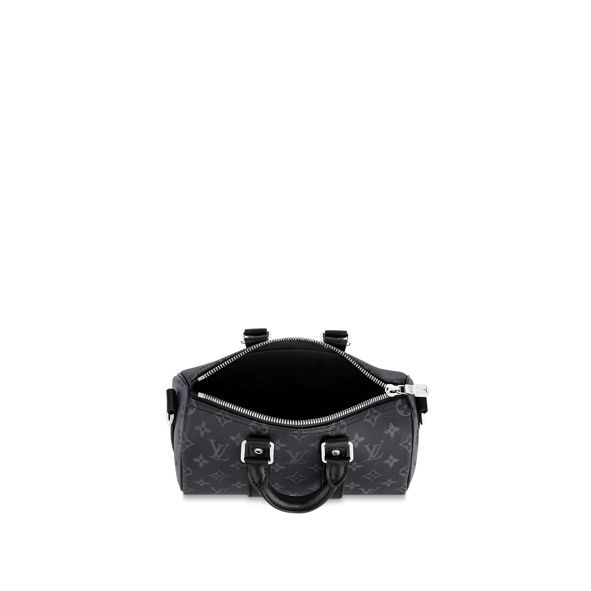 The bestselling Keepall 25 now comes in Monogram Eclipse Reverse canvas. an elegant variation on L’s most iconic pattern. This ultra-functional contemporary city bag features all the signature Keepall details. from the twin reinforcement strips to the leather name tag. With a zipped closure to keep belongings secure but easily accessible. it’s an ideal everyday companion.