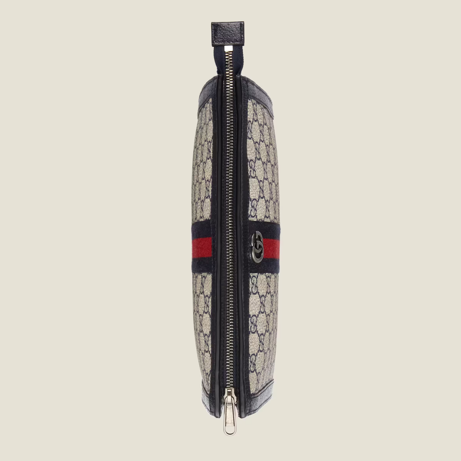 Mirroring the material's historic origins. GG Supreme is introduced in a timeless mix of blue and beige for GG Love Parade. The canvas has come to the front of each collection decade after decade to become a hallmark of the House. Here. the classic palette defines this slim Ophidia pouch.